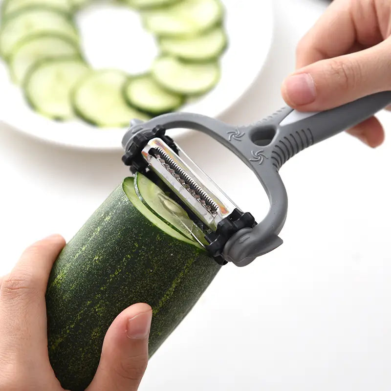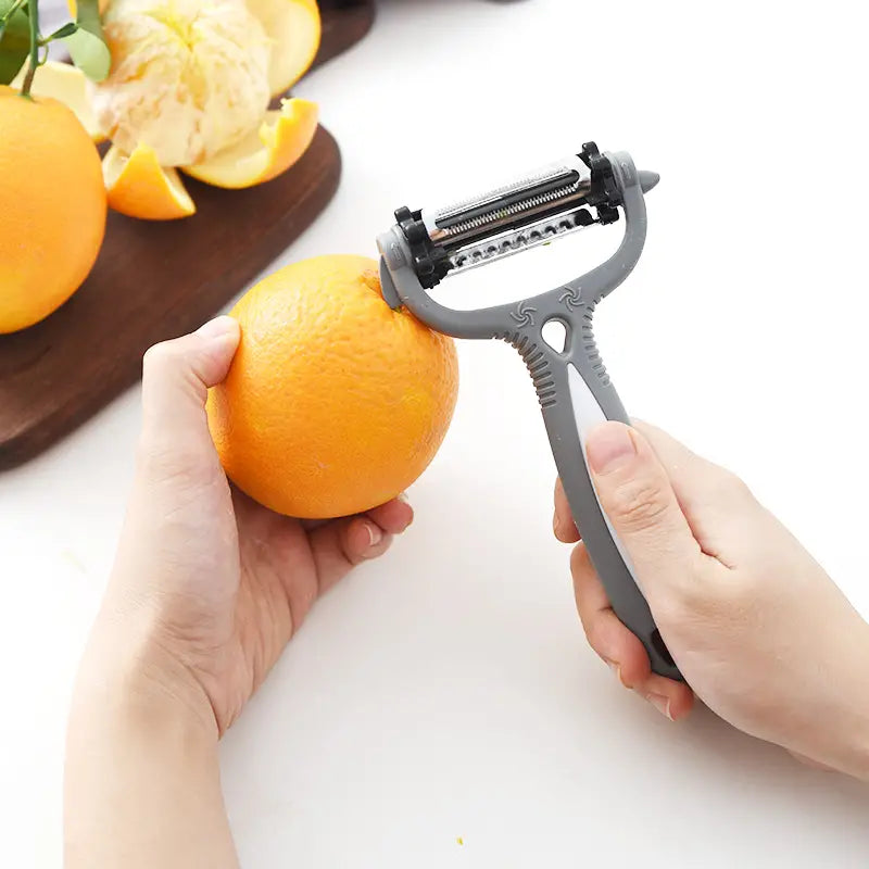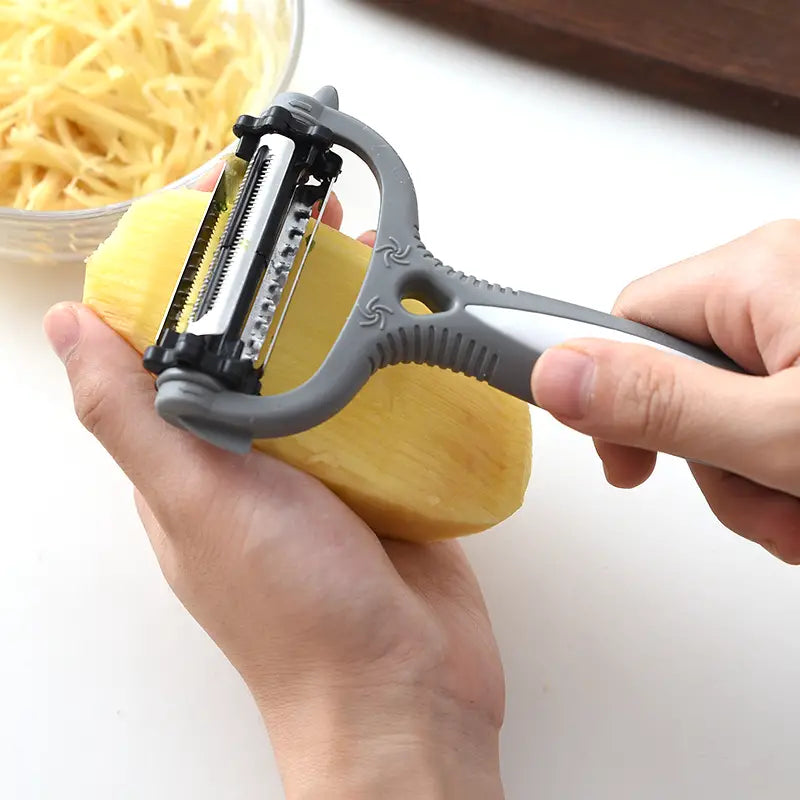 The innovative three-in-one design allows you to julienne, peel, and grate a variety of vegetables and fruits with ease. Say goodbye to clunky kitchen gadgets and hello to this modern and simple solution that streamlines your cooking process. Available in two stylish colors, Black and Gray, it fits seamlessly into any kitchen decor.