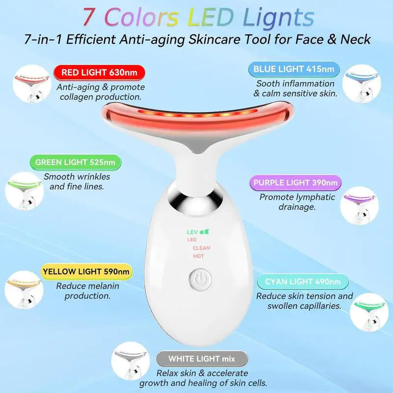 7-In-1 Neck Face Massager, 7 Color Led Face Neck Massage for Skin Care at Home, Portable Facial Massager,Face Sculpting Tool,Multifunctional Vibration
