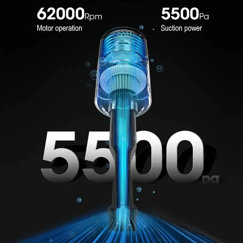 With a powerful 120W motor and an impressive 6000Pa suction force, this vacuum can tackle even the toughest dirt and debris. Whether it's crumbs from your car seats or dust from your living room, the strong suction force ensures that no mess is left behind.