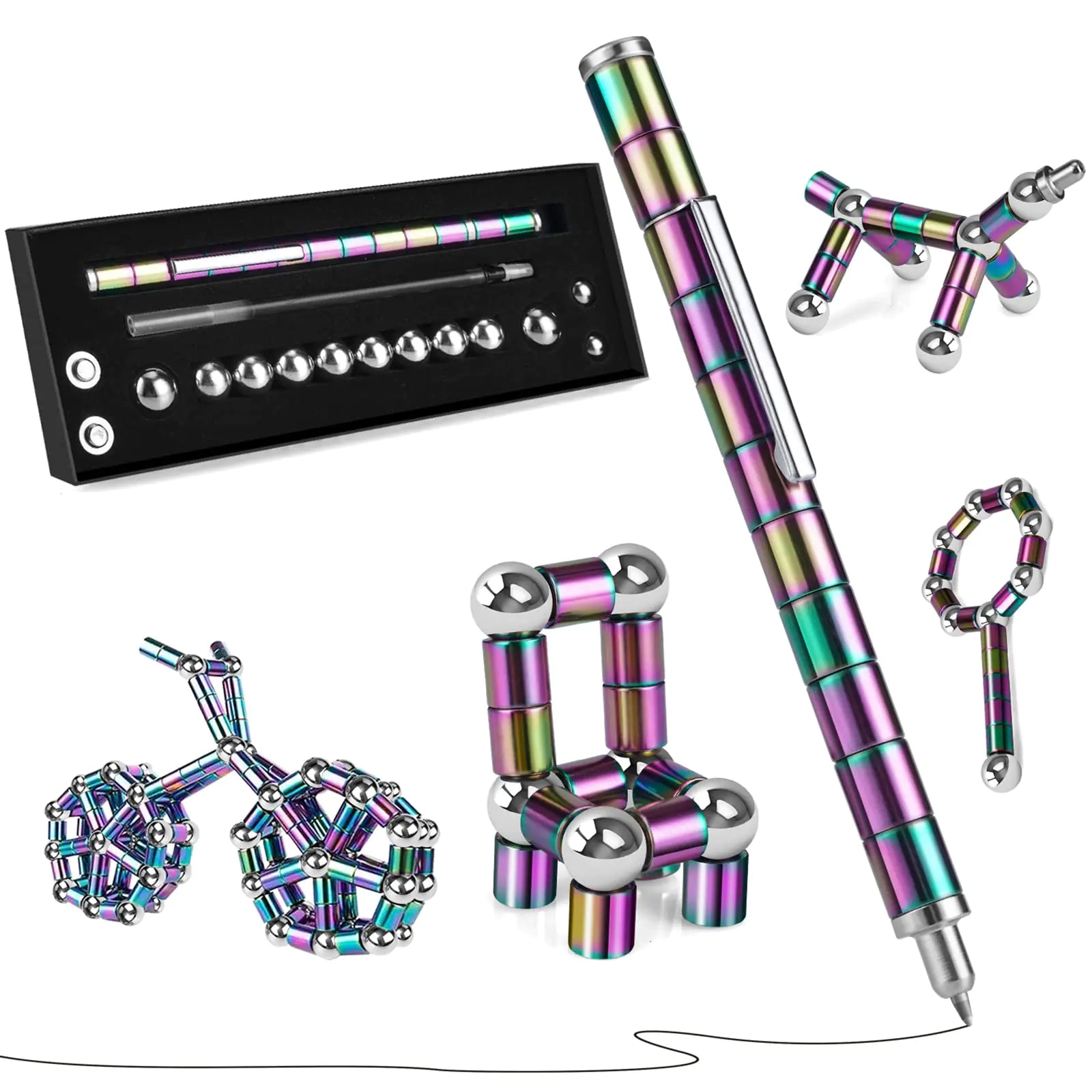 [【Fidget pen package includes】13 Fidget rings10 large steel balls2 small steel balls 2 pen refills2 touch screen pen tipsand a gift box. 【Deformation Toy】This Fidget pen is not only a water pen but also a cool toy pen with finger gadget. It can become many shapes according to your imagination such as swords robots monsters etc. 【Drop-resistant Fidget pen】The LARAH Fidget pen using the latest alloy Fidget material more drop-resistant toy pen with gold plating process the surface is more shiny.The fidget pen can serve as both a regular pen and an office gadget. This pen may be a great option for those who enjoy fidgeting as it provides a tactile experience with its unique design. 【Stress Relief fidget Toys】This Fidget toy adhd pen helps stress and anxiety. Just play with these fidget pen and get your creative flowing.This fidget toy pen is cool gadgets for teens . "【Great Gift】The Fidget Gel Pen appears to be a unique and multifunctional device that combines both practicality and playability. Its design concept makes it a suitable personalized creative gift for men women him and her. Not only does the pen come in an exquisite gift box but it also has various applications for different occasions. The Fidget Gel Pen can serve as a birthday Valentines Day Mothers Day Fathers Day teachers day Christmas Easter graduation or holiday gift."]