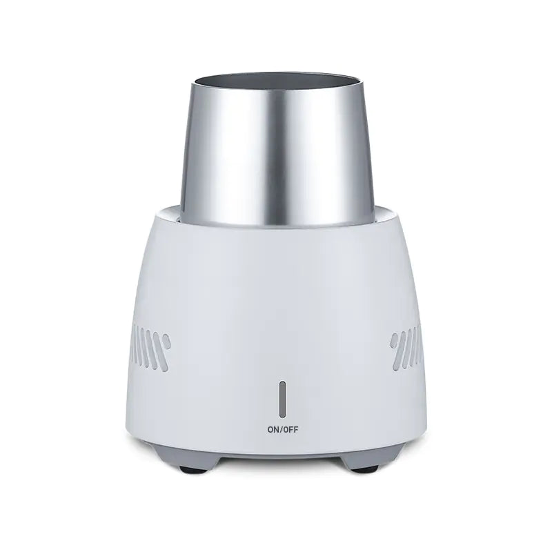 Not only does it cool your drinks rapidly, but it's also compact enough to fit seamlessly on your desk or bedside table. Measuring just 12.5cm x 12.5cm x 10cm, it is designed for modern living. Choose between multiple options, including white or black finishes and voltages of either 110V or 220V, making it versatile for any setting.
